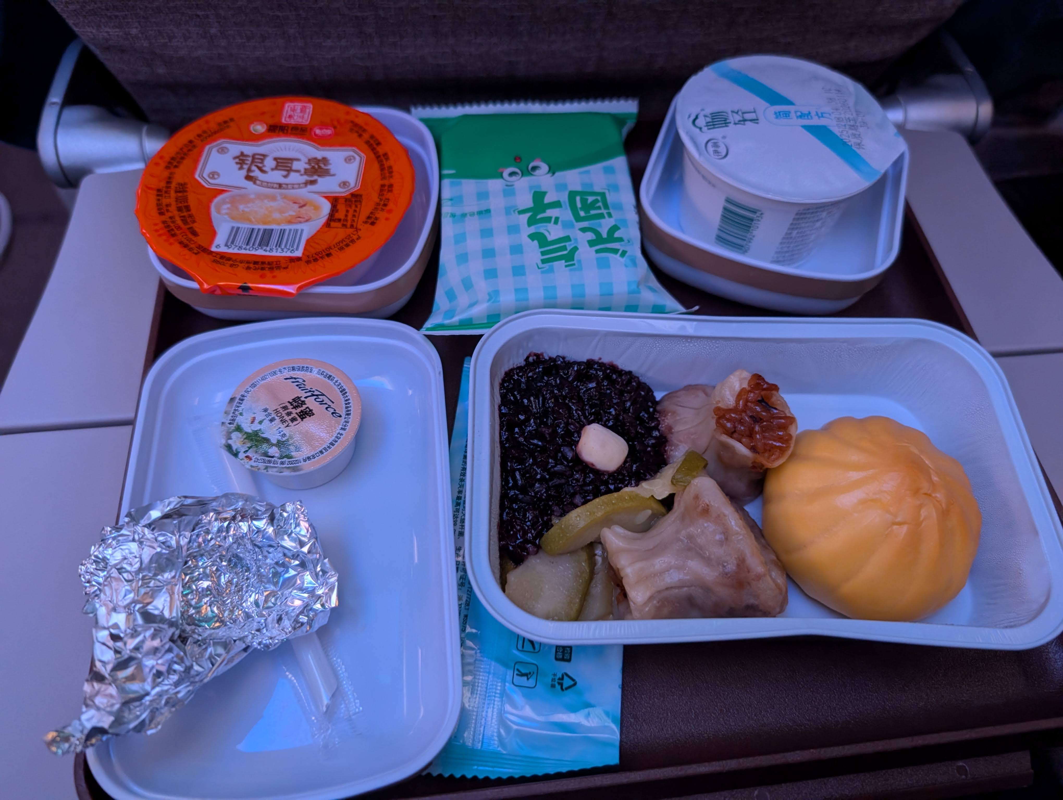 機内食は… メインディッシュは美味しかったのですが、一部サイドがよく分からない味がして全て美味しいとまでは言えなかったです。